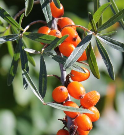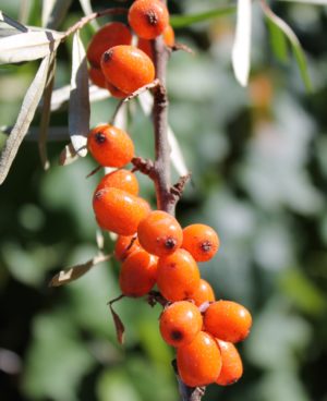 Good drainage is essential as well, otherwise plants will die from root rot. They prefer a sandy loam, but even growers with heavy clay soils have successfully grown Sea Berries if they are planted on a slope that drains well. Coastal growers will also benefit from Sea Berry’s tolerance of saline soils. They often grow on coastal dunes and slopes where the ocean spray makes it impossible for larger saline-intolerant species to grow up and shade out the Sea Berries. This adaptation is also especially relevant for urban growers who might receive salt build up in their soils from road salt used in winter road maintenance.